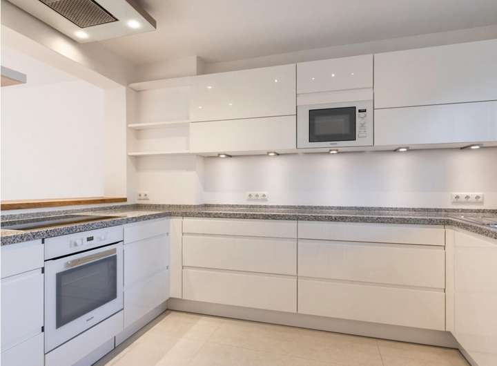 Die Küche ist mit hochwertigen Einbaugeräten von Miele, Siemens und AEG ausgestattet und bietet großzügigen Stauraum sowie eine funktionale Raumaufteilung - ideal für den täglichen Gebrauch und zum Kochen mit Familie oder Freunden.