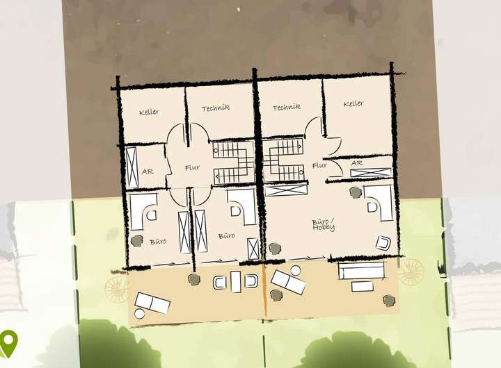 Jede Doppelhaushälfte hat eine Wohnfläche von ca. 114 m².