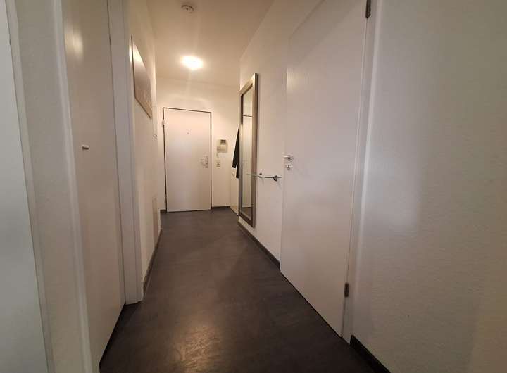 Diese führt Sie in den Abstellraum, in den Wohn-Essbereich und in das Badezimmer.