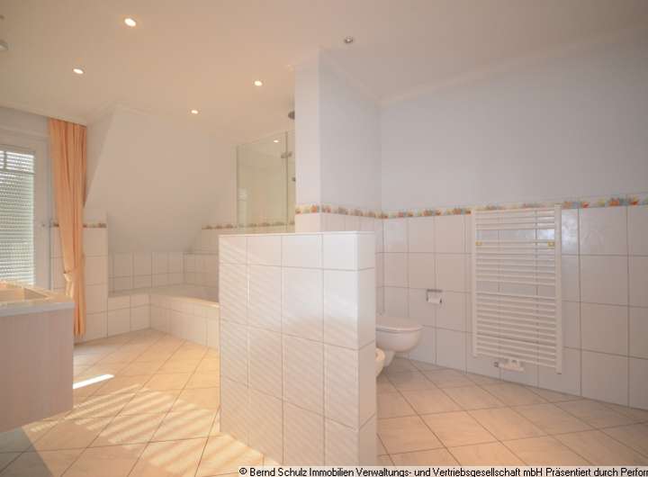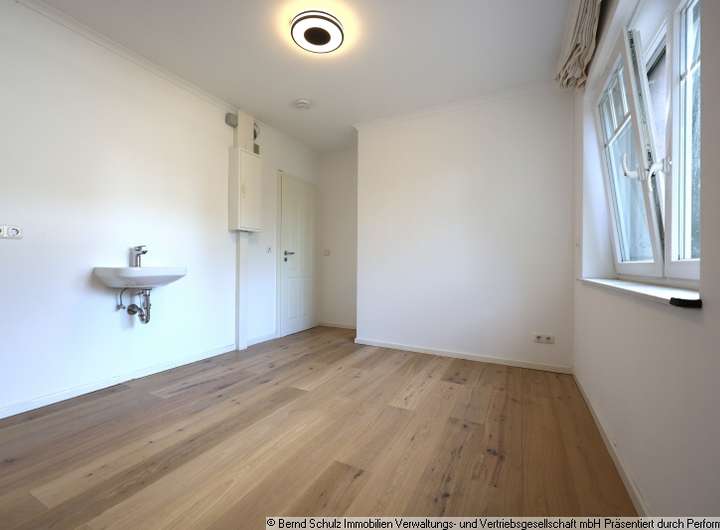 Die gesamte Wohnung wird über eine Fußbodenheizung erwärmt. Alle Räume sind mit elektronischen Außenrolläden ausgestattet. Im Flur sowie in den Wohn- und Schlafräume ist ein Holzdielenparkettboden ausgelegt. Küche, Speisekammer, Bad, Gäste-WC und Abstellraum sind gefliest.