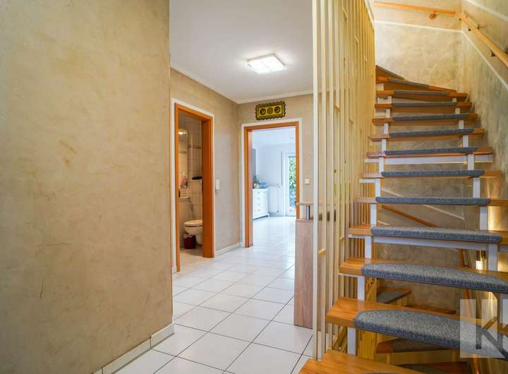 Das ausgebaute Dachgeschoss schafft eine weitere Ebene, die das Haus um wertvollen Wohnraum erweitert. Ob als zusätzliches Kinderzimmer, Homeoffice, Gästezimmer oder Hobbyraum – dieser Bereich lässt sich unkompliziert an verschiedene Lebensphasen anpassen und bietet zugleich praktischen Stauraum. Der Vollkeller ergänzt das Angebot mit reichlich Abstell- und Nutzflächen, ideal für Vorräte, Hobbys, Haushalt oder eine kleine Werkstatt.
