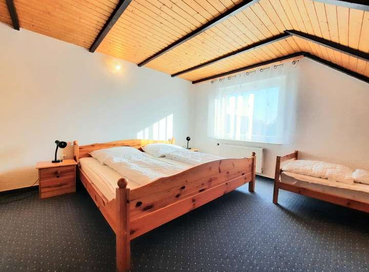 Dieses Wohnhaus mit Anbau wurde im Jahre 1987 mit entsprechend hochwertigen Materialien erbaut und bezogen. Das Hauptgebäude beherbergt zwei Ferienwohnungen zu ebener Erde, ergo parterre. Im ehem. Garagengebäude (Anbau) ist eine weitere ca. 40qm große Ferienwohnung zu ebener Erde. Einer der drei vermietbaren Ferienwohnungen befindet sich auf zwei Ebenen. Hier befinden sich zwei großzügige Schlafräume und ein Flur mit Garderobe. Die Eigentümer- bzw. Betreiberwohnung, befindet sich im Anbau über den ehem. Garagen und verfügt über eine vollüberdachte Loggia, die nach Norden ausgerichtet ist und über einen eigenen Eingangsbereich verfügt, in dem sich auch die neue Heizungsanlage befindet. Dieses Haus kann auch als Ein- oder Zweifamilienhaus genutzt werden. Interessant für Käufer, die hier selbst wohnen wollen und sich zudem lukrative Nebeneinkünfte sichern möchten.