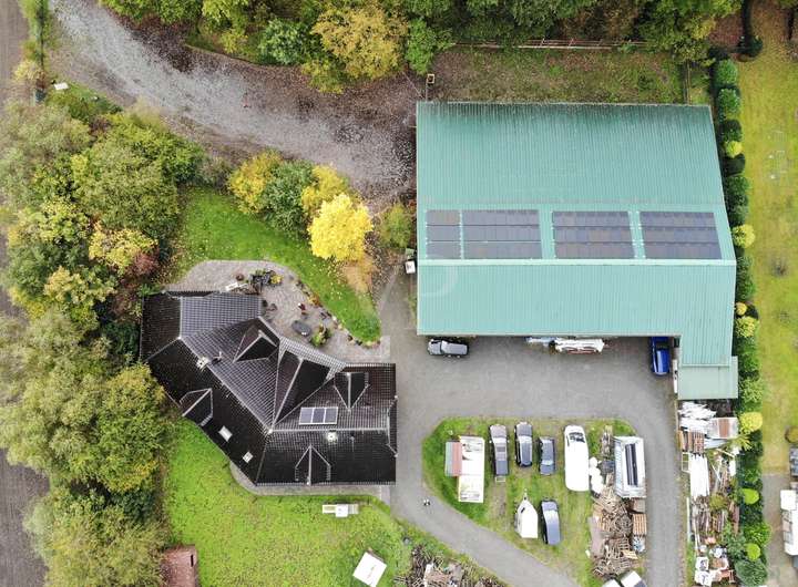 - ca. 35 kWp große PV-Anlage auf der Gewerbehallen ca. 2024 installiert