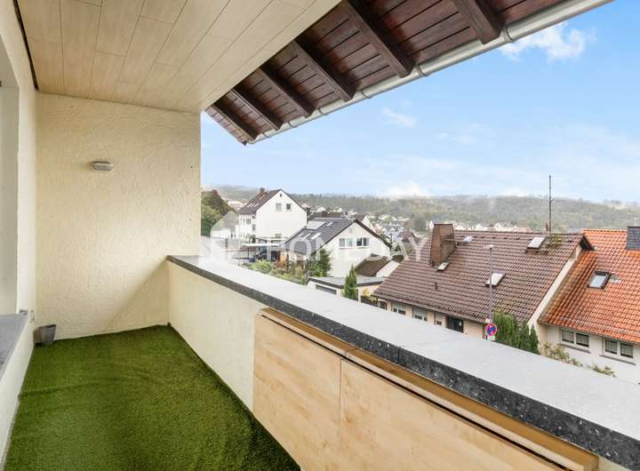 Die Obergeschosswohnung (ca. 89 m² Wohn- und 91,3 m² Nutzfläche) überzeugt mit einem großzügigen Grundriss, Kaminofen, moderner Küche und einem Westbalkon mit traumhaftem Fernblick. Ein Elternschlafzimmer, ein Kinderzimmer/Büro sowie ein Tageslichtbad mit Wanne und Dusche bieten hohen Komfort. Zudem besteht ein Sondernutzungsrecht am Garten (ca. 42 m²). Das Dachgeschoss eröffnet mit 61,2 m² zusätzlichen Ausbauoptionen. Stellplätze: eine Garage und ein Außenstellplatz.