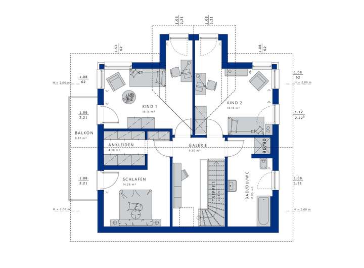 Obergeschoss runden das großzügige Hauskonzept des EVOLUTION 154 ab.