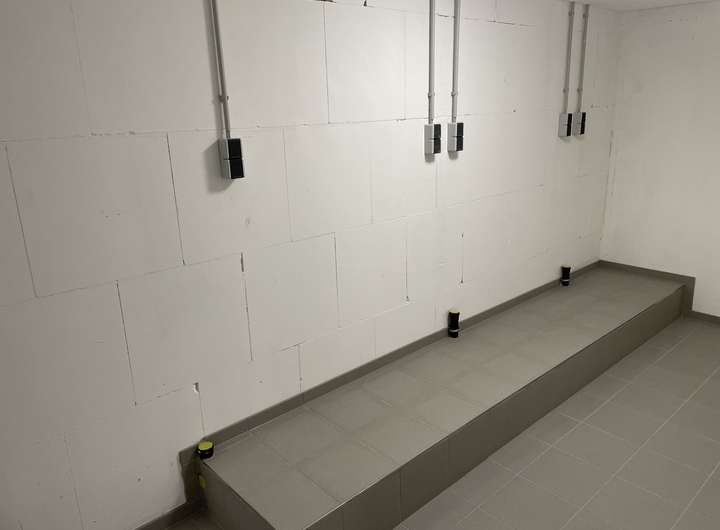 Der Anschluss für die Waschmaschine-Wäschetrockner befindet sich im separaten Waschraum im Keller.