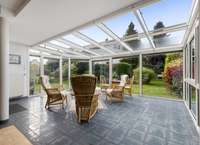 Eingangsbereich, Diele mit Treppenhaus, Gäste-WC inkl. Dusche, Küche, sowie das riesige Wohnzimmer mit Wintergarten: 59 m²