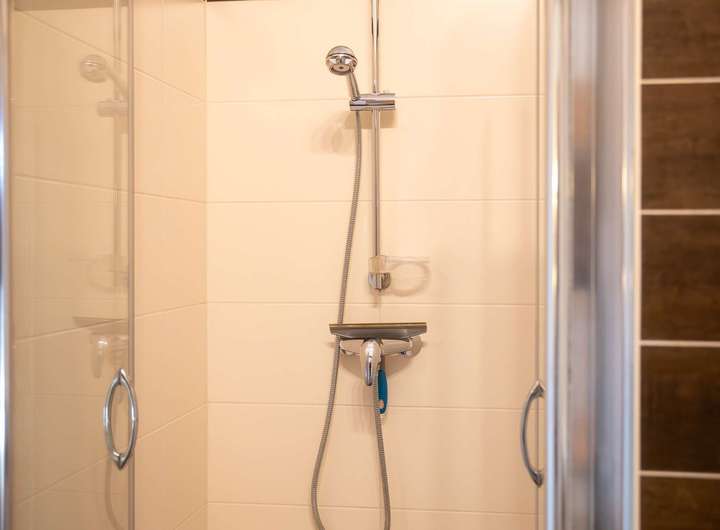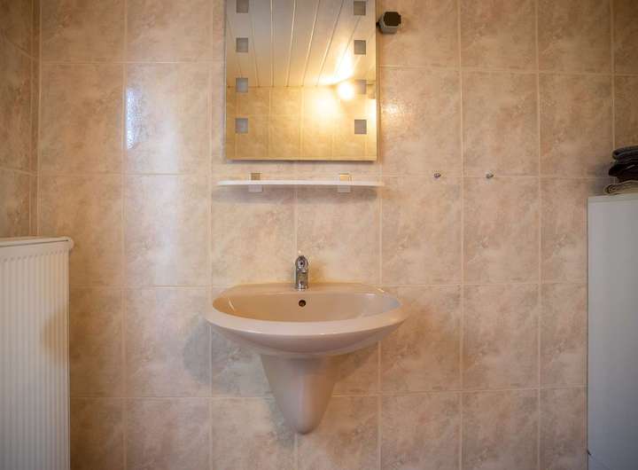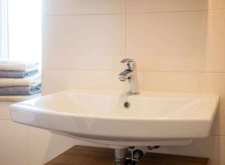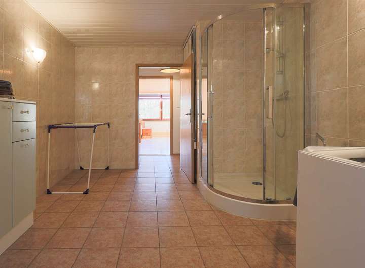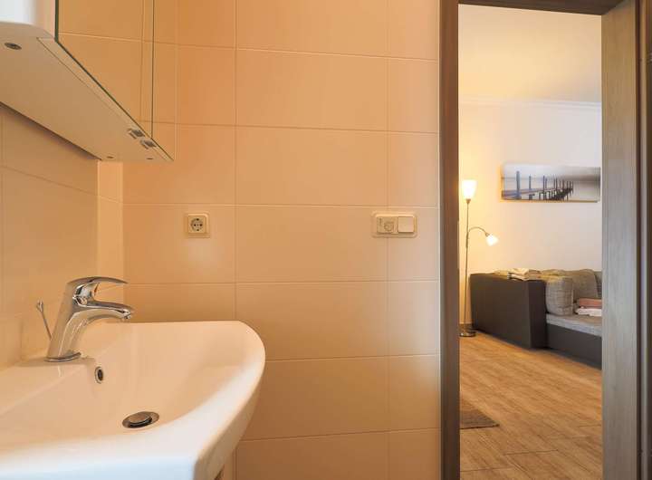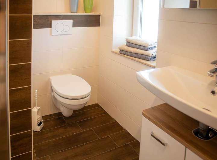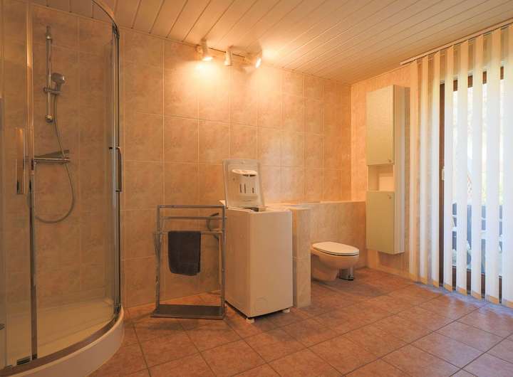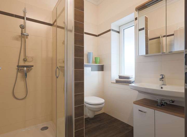 -Bäder: gefliest, Duschen oder Wanne, WC