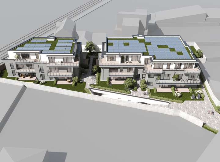 In der gemeinsamen Tiefgarage stehen 26 PKW-Stellplätze und ein großzügiger Fahrradkeller zur Verfügung. Weitere Fahrradabstellflächen sind unauffällig in die umgebenden Grünflächen integriert. Klare Linien, zeitlose Eleganz und die harmonische Einbettung in die gewachsene Umgebung machen das Projekt zu einem echten Blickfang.