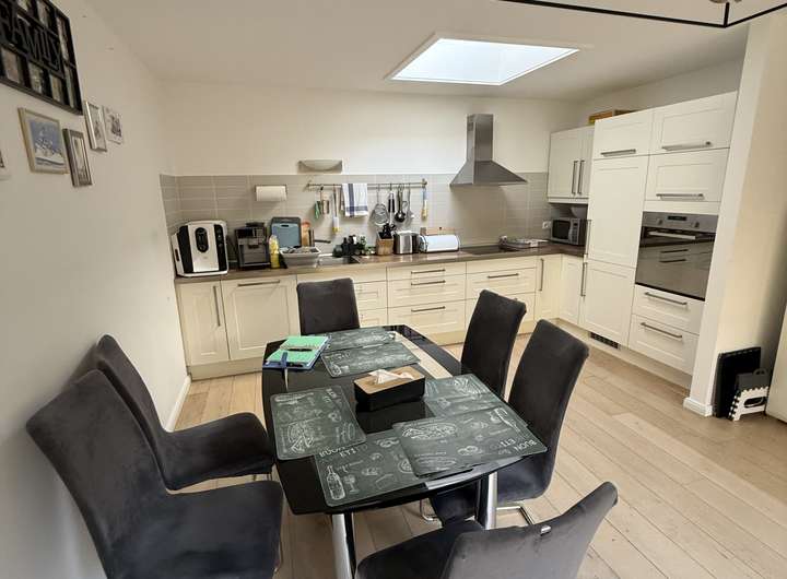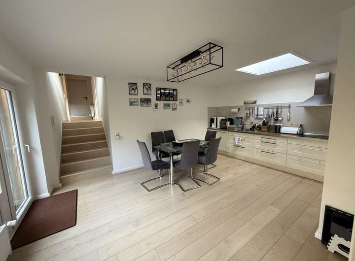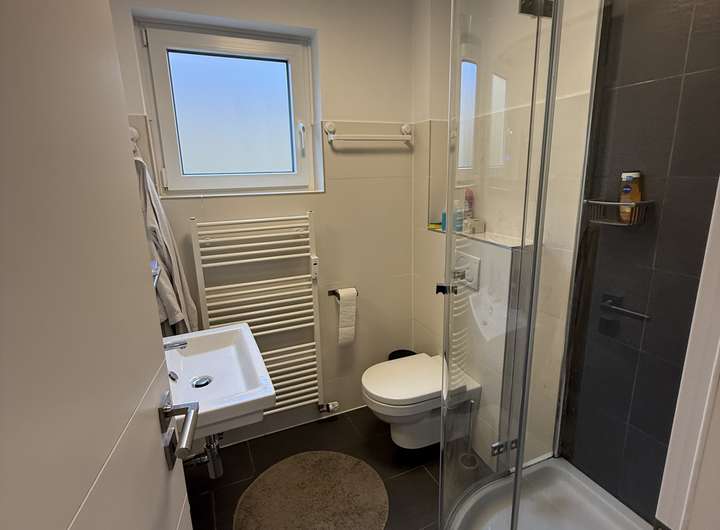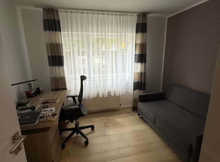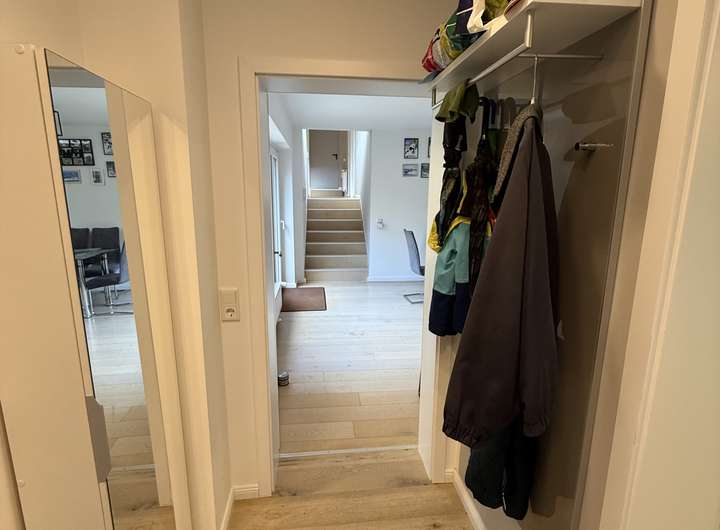 Über den separaten Eingang gelangen Sie in den weitläufigen Wohn- und Essbereich , zu einem Büro und einem Gäste WC mit Dusche. Ein direkter Zugang führt zu den zwei Terrassen und zum Garten- ideal zum Entspannen, spielen oder für gemütliche Stunden im Freien.