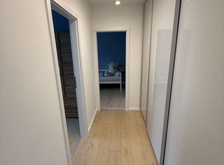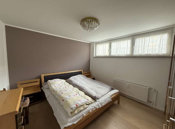Die wunderschöne Wohnung im Bungalowstil ist mit Versatz gestaltet. Sie gelangen über ein paar Stufen in die 3 Schlafräume und in ein innenliegendes Duschbad. Auf dieser Ebene liegt, sehr praktisch für den Alltag, ein großer Abstellraum mit einem weiteren Zugang/ Ausgang zum eigenen Aussenstellplatz für Ihr Auto.