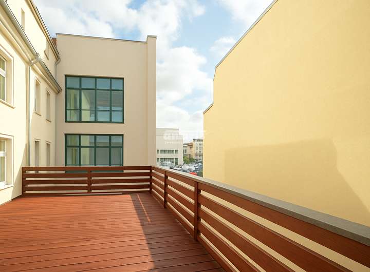 Ein besonderes Highlight ist die großzügige, hofseitig ausgerichtete Terrasse, die viel Ruhe und Privatsphäre bietet. Der Holzbelag der Terrasse wurde aufgearbeitet und lädt nun zu entspannten Stunden im Freien ein.