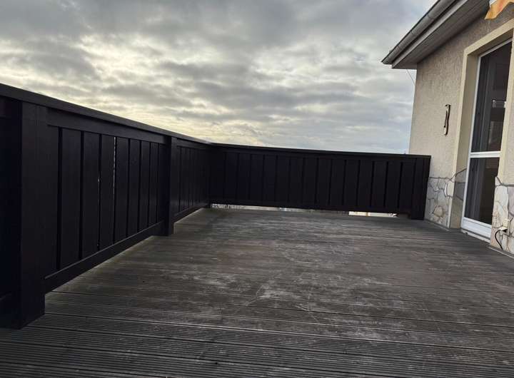 In der unteren Ebene, dem 3. Obergeschoss, befindet sich der offene Wohn- und Essbereich, der mit einer hochwertigen Einbauküche mit Kochinsel ausgestattet ist. Großzügige Fensterfronten sorgen hier für viel Tageslicht und ermöglichen einen direkten Zugang zu einem großen Balkon – ideal, um Stunden im Freien zu verbringen. Ein Kaminofen im Wohnbereich sorgt für behagliche Atmosphäre an kühleren Tagen.