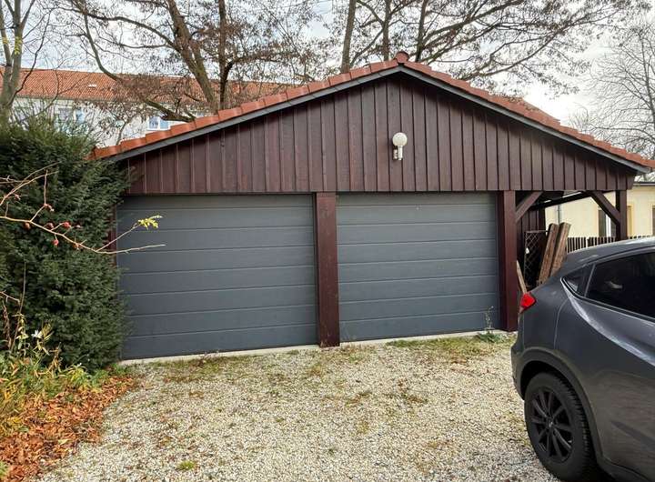 Zur Wohnung gehören zwei Garagen und ein PKW- Stellplatz, was in dieser Lage besonders vorteilhaft ist.