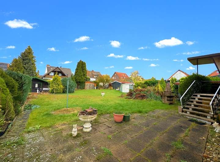 1983 wurde der Wohnbereich um einen beheizbaren Wintergarten mit Südausrichtung erweitert, der direkt vom Wohnzimmer aus zugänglich ist. Das ca. 898 m² große Eigentumsgrundstück bietet viel Platz für Garten, Spiel- und Freizeitflächen.