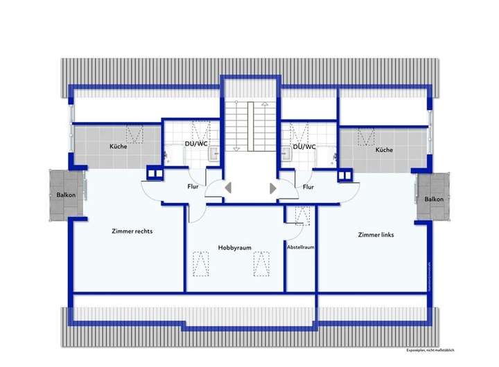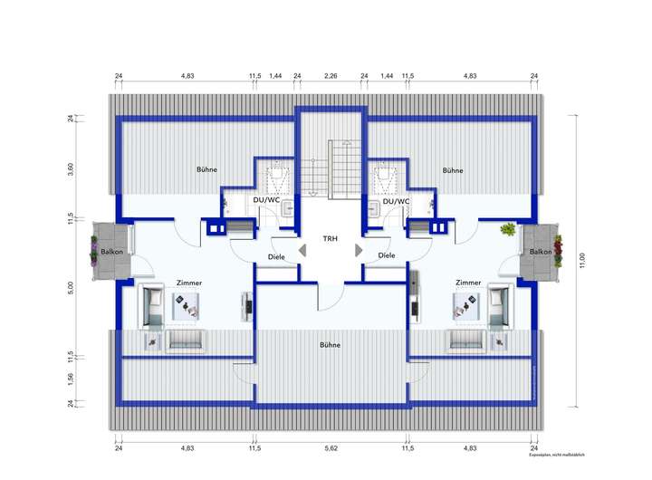 • Das Dachgeschoss wurde ausgebaut; ehemals teilweise Bühnenfläche.