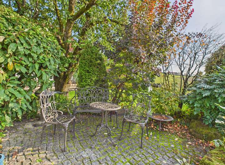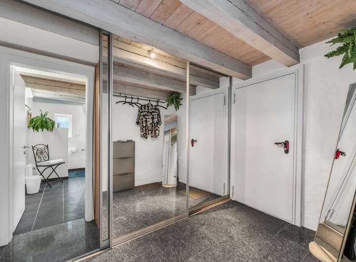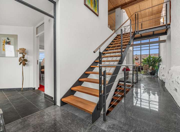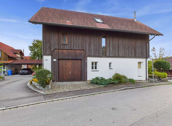 Das etwa 790 m² große Grundstück (inklusive Anteil an der Privatstraße) bietet einen direkten Zugang zu einer Weide, dazu kommen eine innenliegende Garage, ein Carport und weitere Stellplätze. Dieses Haus richtet sich an Käufer, die eine besondere Innenarchitektur sowie Charakter und Geschichte schätzen, moderne Technik erwarten und flexible Nutzungsmöglichkeiten suchen – ideal für Familien, Mehrgenerationen, Gastgeber oder Menschen, die Wohnen und Arbeiten unter einem Dach vereinen möchten.