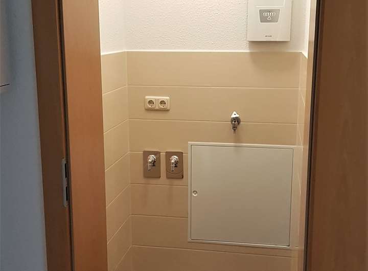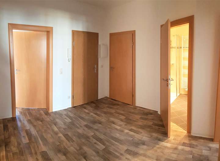 Die Wohnung wird vor Einzug vollständig renoviert. Sie verfügt über Wohnzimmer, Schlafzimmer, Kinderzimmer, Küche, Flur, sowie modern gefliestes Bad mit ebenerdiger Dusche und Badmöbel. Der in der Wohnung gelegene Hauswirtschaftsraum bietet Platz für Waschmaschine und Trockner.