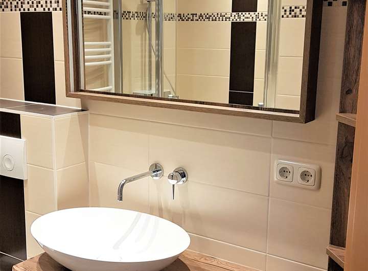 Komfort auf ganzer Linie: stilvolles Bad mit ebenerdiger Dusche, Badmöbel und Hauswirtschaftsraum!