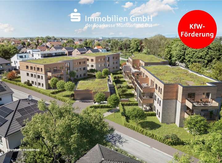 Die Neubauten im Rüenkolk Quartier verbindet zentrumsnahes Wohnen mit idyllischer Natur – eine ideale Wohnlage in Beckum. Am Rande des schönen Münsterlandes liegt Beckum inmitten von Seen, Wander- und Radwegen und bietet zahlreiche Naherholungsmöglichkeiten. Dank der direkten Bahnanbindung und der Nähe zur Autobahn A2 sind die umliegenden Regionen schnell und bequem zu erreichen.