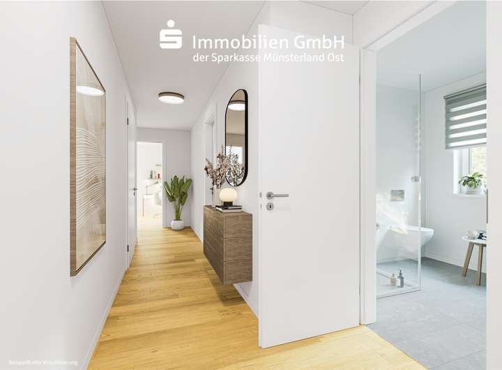 Die Beckumer Innenstadt mit ihrer Vielzahl an Gastronomie- und Freizeitangeboten erreichen Sie innerhalb weniger Minuten. Alle Einrichtungen des täglichen Bedarfs, wie Einkaufsmöglichkeiten, Kindergärten, Schulen oder Ärzte, befinden sich in unmittelbarer Nähe und sorgen für kurze Wege im Alltag. Richtung Süden lädt der renaturierte Bachlauf des Rüenkolks sowie die angrenzende grüne „Pflaumenallee“ zu erholsamen Spaziergängen oder Joggingrunden in der Natur ein.