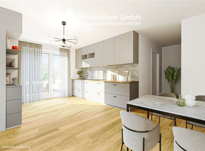 Im Rüenkolk Quartier entstehen vier Häuser innerhalb von zwei Bauabschnitten. In Haus 3 stehen zukünftig 9 Wohneinheiten zur Verfügung. Zwei- bis Drei-Zimmer Wohnungen mit Wohnflächen zwischen ca. 68 m² und ca. 91 m² sowie zeitlosen Grundrissen erfüllen unterschiedlichste Wohnbedürfnisse. Alle Wohneinheiten verfügen über einen eigenen Balkon oder Garten, sodass die Bewohnerinnen und Bewohner gesellige Sonnenstunden im Freien genießen können. Für zusätzlichen Komfort sorgen praktische elektrische Rollläden sowie Fußbodenheizung in allen Räumen, sodass gemütlichen Abenden auf dem Sofa nichts im Wege steht. Die hochwertige Ausstattung der Wohnungen erschafft eine angenehme Wohnatmosphäre. Die Bodenbeläge Ihrer Wohnung können Sie individuell aus einer Vielzahl an Vinyl-Design- Varianten auswählen. Auch die Fliesen in den Bädern werden nach Ihren Wünschen, in einer Kombination aus Putz- und Fliesenflächen, malerfertig verlegt.