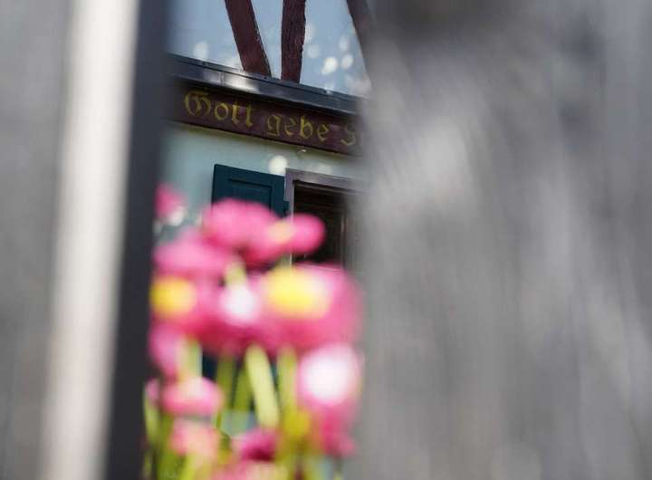 - Inschrift zwischen den Geschossen als historisches Zeugnis