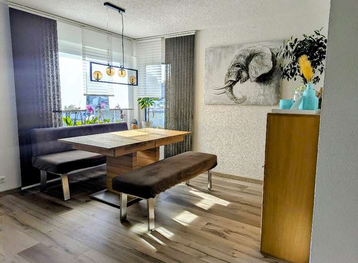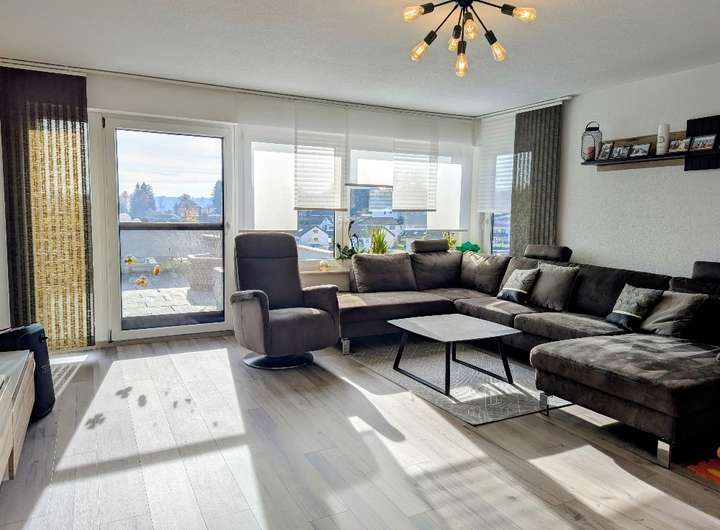 Hoch über Giengen in einer ruhigen und dennoch sehr zentralen Wohnlage, stadtnah und zugleich unweit von Wiesen, Wald und Feldern, residieren Sie in dieser im Jahr 2016 gründlich renovierten, top- modernen und lichtdurchfluteten Traumwohnung, die Ihnen von der großzügigen Sonnenterrasse, mit rund 84m² einen umwerfenden und unverbaubaren Blick aus der Adlerperspektive gewährt, hinab auf die Stadt Giengen an der Brenz.