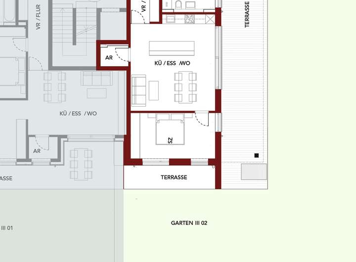 Zur Wohnung gehören ein Kellerabteil sowie ein Tiefgaragenstellplatz.