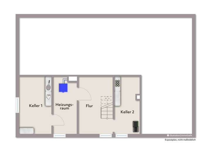 Das Haus verfügt über einen Teilkeller und eine Garage.