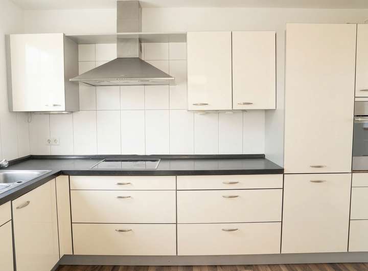 ausgestattete Einbauküche mit modernen Elektrogeräten sowie der