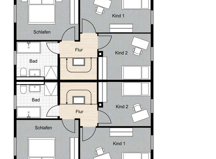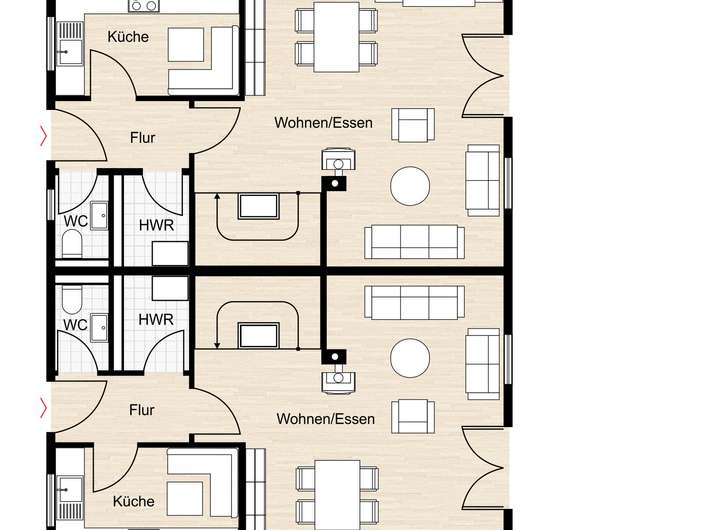 sowie einem WC ausgestattet. Für jede Doppelhaushälfte stehen