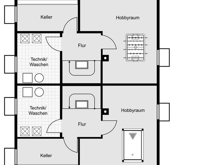 Das Untergeschoss umfasst drei Kellerräume, darunter eine