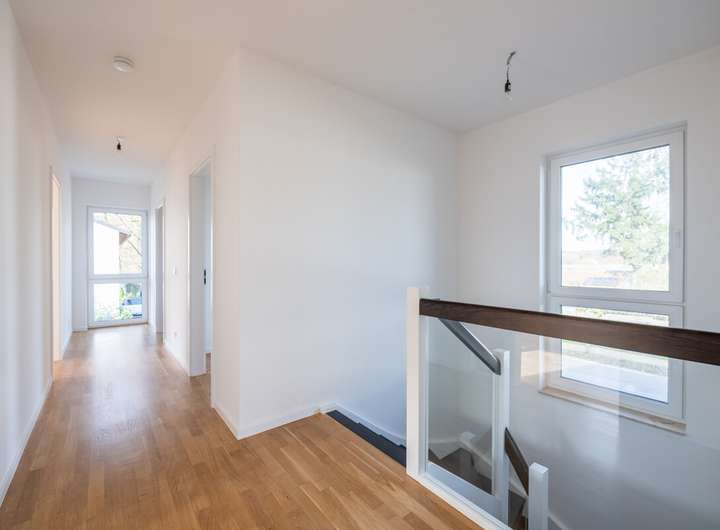 Im Obergeschoss zeigt sich der durchdachte Grundriss von seiner schönsten Seite: Zwei helle Kinderzimmer bieten Raum für Fantasie, Lernen und Rückzug. Ein praktischer Abstellraum sorgt für Ordnung im Familienalltag, während das Badezimmer mit Dusche funktionale Nähe für das morgendliche Treiben schafft. Ein separater kleiner Flur führt in den Rückzugsbereich für die Erwachsenen, bestehend aus Schlafzimmer, Ankleidezimmer und einem hellen Badezimmer mit Badewanne und Dusche. Ein Ort zum Durchatmen, Wohlfühlen und Kraftsammeln. Beide Badezimmer verfügen über Tageslicht, wodurch der Start in den Tag besonders angenehm wird. Mit insgesamt sechs gut geschnittenen Zimmern bietet das Haus Raum für jede Lebensphase: Kinderlachen, Homeoffice, Gäste oder kreative Hobbys, alles findet hier seinen Platz. Ein eigener PKW-Stellplatz erleichtert die Wege im Alltag und fügt sich praktisch in das Gesamtbild ein. Dieses Einfamilienhaus in den Teltower Bergen lädt Familien dazu ein, anzukommen, aufzublühen und ein Zuhause mit Herz zu finden.