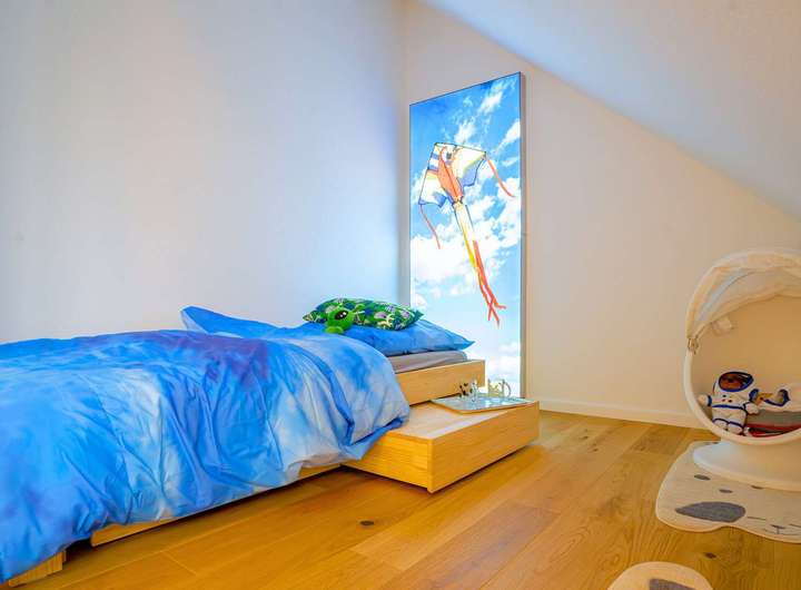 Disclaimer: Bei den angegebenen Fotos handelt es sich um Beispielbilder unseres Musterhauses. Dargestellte Visualisierungen bilden immer den jeweiligen Planungsstand ab. Änderungen behalten wir uns vor. Gegen Aufpreis können individuelle Sonderwünsche den Wohnstil ergänzen.