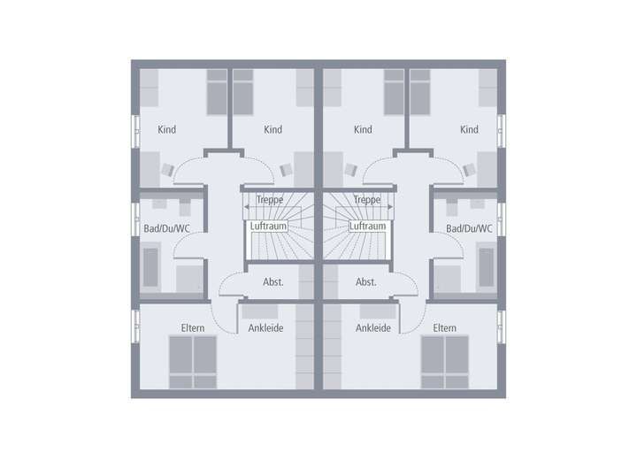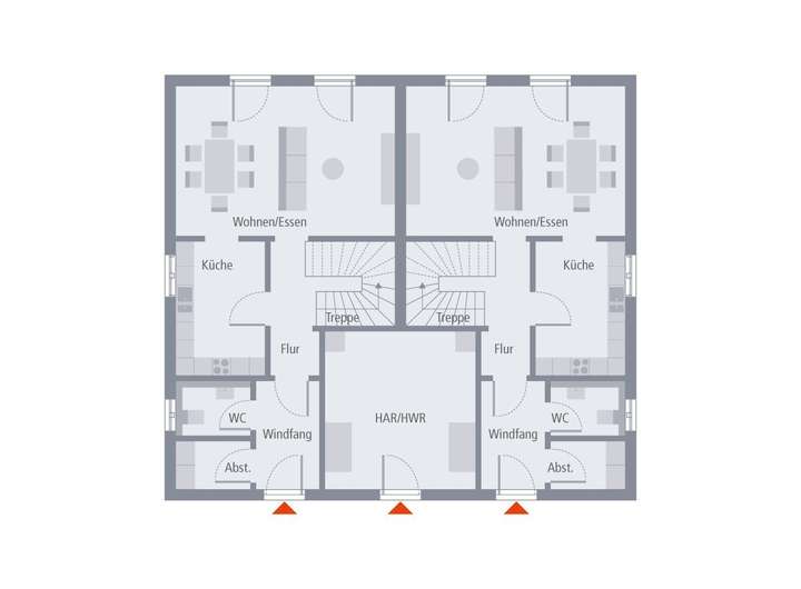 Unter einem Dach leben und dennoch den Komfort eines Einfamilienhauses genießen - das ist in unserem Zinshaus 1 möglich. Unter dem zeitlos-eleganten Satteldach befinden sich zwei baugleiche Wohneinheiten, die sich jeweils über zwei Etagen erstrecken und die über zwei separate Eingänge verfügen. Über einen Windfang, an den sich Gäste-WC und Abstellraum anschließen, und einen Flur mit Treppenhaus führt der Weg an der Küche vorbei ins Wohn-Ess-Zimmer, das mit einer Größe von 22 qm und direktem Zugang zum Garten wohnlicher Mittelpunkt ist. Ebenfalls im Erdgeschoss: der große Hauswirtschaftsraum, der von beiden Parteien über eine außerhalb des Hauses gelegene Tür zugänglich ist. Im Obergeschoss befinden sich die Rückzugsräume für die ganze Familie. Zwei Kinder haben hier Raum zum Spielen, Lernen und Schlafen. Gegenüber befindet sich das Schlafzimmer der Eltern - mit einem direkt angegliederten Ankleidezimmer. Abgerundet wird das Raumangebot im Obergeschoss durch ein großes Badezimmer mit Wanne, Dusche und WC.