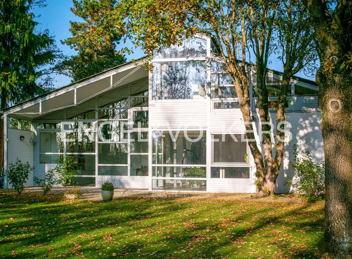 Dieses außergewöhnliche Architektenhaus wurde 1989 in innovativer Holzständerbauweise vom renommierten Architekten Schulitz entworfen und mehrfach ausgezeichnet. Es verbindet zeitlose Architektur mit nachhaltiger Bauweise und modernem Wohnkomfort. Zwischen 2018 und 2022 wurde die Immobilie umfangreich modernisiert. Im Zuge der Sanierungsarbeiten erfolgte 2018 der Einbau einer neuen Heizungsanlage. Zudem wurde 2022 eine Photovoltaikanlage auf dem Dach installiert, die das Haus energetisch optimiert und langfristig auf einen zukunftsfähigen Betrieb ausrichtet. In den Jahren 2018 bis 2020 wurden sämtliche Außenholzflächen überarbeitet sowie alle Böden, Türen, Beschläge und Bäder vollständig renoviert.