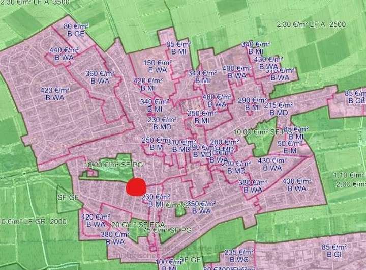 Zum Verkauf steht hier ein 1700m² großes Baugrundstück in zentrumsnaher Ortslage.