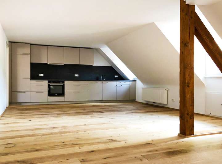 Hier trifft historischer Altstadtflair auf modernes Wohnen. Die helle 2-Zimmer-Mietwohnung befindet sich im 2.OG (Dachgeschoss) in einem der schönsten Altstadthäuser - dem ehemaligen Kornhaus. Es wurde direkt an die Meersburg angebaut und früher von den Mönchen, die nahe der Burg leben sollten, als Wohnhaus genutzt. Die Wohnung wurde im Jahr 2019 komplett kernsaniert. In diesem Zuge wurden die Böden erneuert und mit Trittschalldämmung ausgestattet, das Bad ausgebaut, eine hochwertige Küche eingebaut sowie der Grundriss optimiert. Unter Berücksichtigung denkmalschützender Maßnahmen wurde im Jahr 2022 auch das Dach saniert. Es wurden die Gauben aufwändig aufgebaut, die Ziegel doppelt belegt sowie die oberste Geschossdecke gedämmt. Über den Flur erreichen Sie das erste Zimmer sowie das großzügige Wohnzimmer mit Blick auf die Altstadt. Über die geräumige Küche mit Essbereich gelangen Sie zum weiteren Zimmer, das sich als Hauptschlafzimmer eignet sowie zum angrenzenden Tageslichtbad. Die Wohnung ist momentan vermietet und ab den 01.02.2026 frei. Öffentliche Parkmöglichkeiten befinden sich in Laufnähe.
