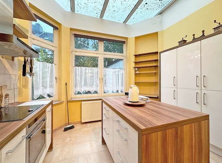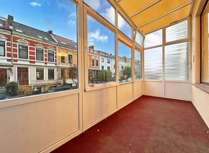 Die Wohnung im Hochparterre zeichnet sich durch ihre besondere Raumaufteilung mit zwei großzügigen Wintergärten aus.