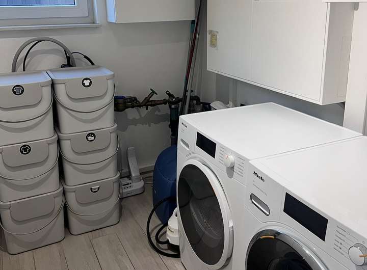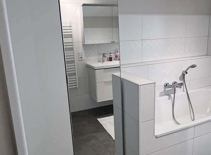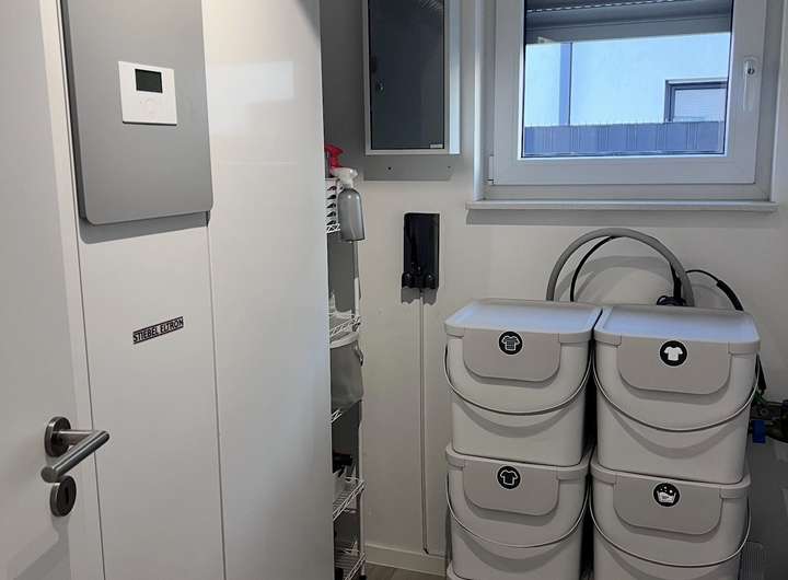Wasserenthärtungsanlage. Diese wurde von Beginn an eingebaut. Rohre und andere Endgeräte sind nicht verkalkt und in einem einwandfreien Zustand.