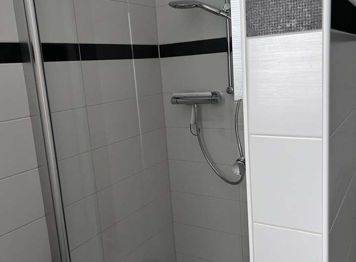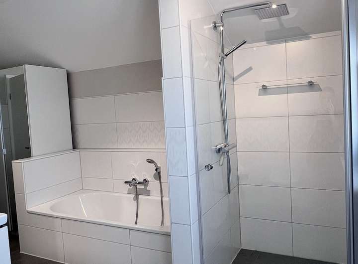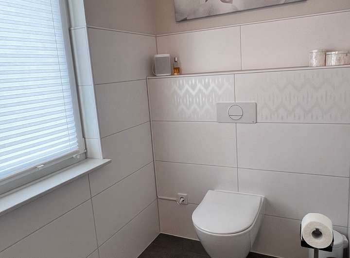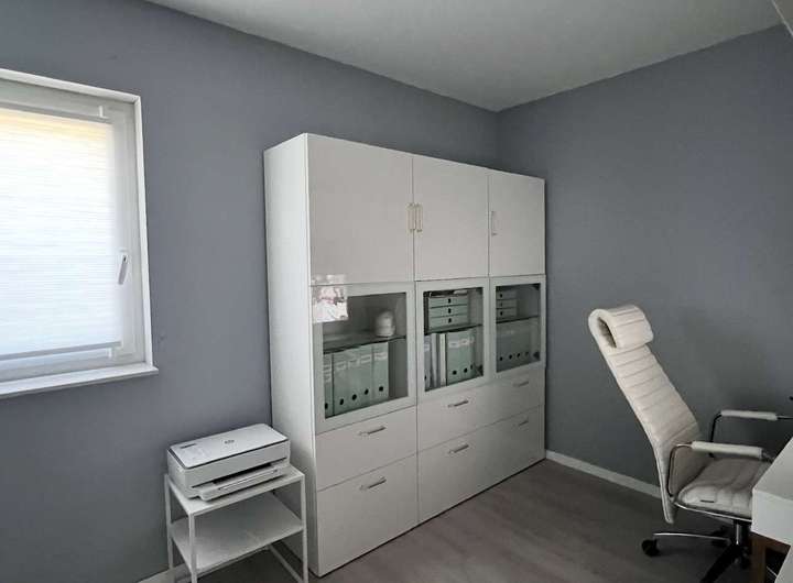 Im Erdgeschoss gibt es noch ein Büro oder Gästezimmer, einen Hauswirtschaftsraum, ein Bad mit Walk In Dusche und einen Abstellraum.