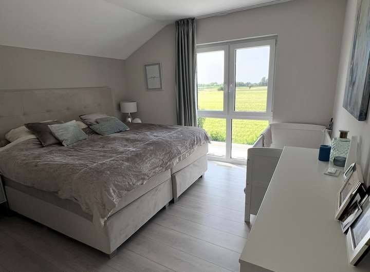 Klimaanlage im ersten OG für alle Schlafzimmer, diese kann über eine Handy App bedient werden.