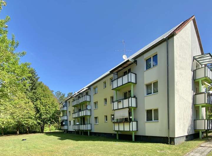 Die Mehrfamilienhäuser wurden 1965 in solider Steinbauweise erbaut, in den Jahren umfassend modernisiert, sind vollunterkellert und bieten insgesamt 27 Wohnungen. Jede Wohnung präsentiert sich mit individuellen Vorzügen und Annehmlichkeiten, die ein entschleunigtes Wohnen ermöglichen. Die 3-Zimmerwohnung verfügt über ca. 61m² und bietet Singles, Paaren und kleinen Familien das ideale Zuhause. Zur Wohnung gehört ein Balkon, der einen herrlichen Blick auf die grüne Umgebung gibt und den zusätzlichen Raum zur Erholung im Freien bietet.
