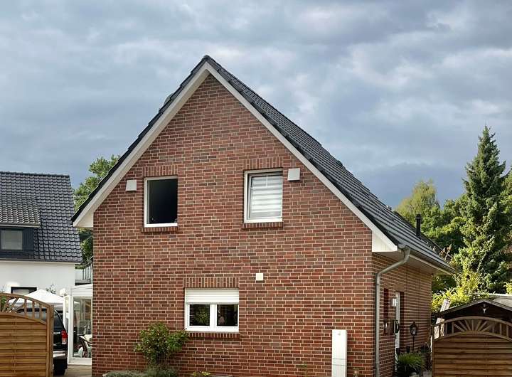 Das 2-geschossige, verklinkerte Gebäude mit Wintergarten wurde 2007 als Einfamilienhaus in einer ruhigen und sehr zentralen, direkt an den attraktiven Ortskern von Bremen-Borgfeld angebundenen Wohnlage (ca. 300m zum Zentrum) errichtet. Das Haus ist in massiver Bauweise mit einer Fassade mit Klinkerverblendung ausgeführt und weist eine Wohnfläche von 70,11 m2 im Erdgeschoss und 47,42 m2 im ausgebauten Dachgeschoss auf, zusammen ca. 118 m2.