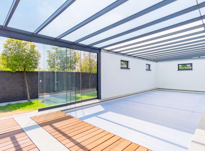 Insgesamt drei Terrassen auf unterschiedlichen Ebenen, der beheizte Swimmingpool sowie der nicht einsehbare Garten mit hoher Privatsphäre laden dazu ein, viel Zeit im Freien zu verbringen.