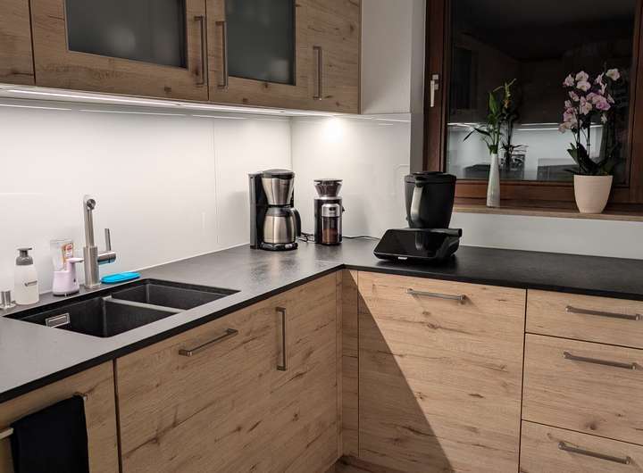 Die Küche wurde von uns bei Einzug 2018 im Küchenstudio Kümel im Ort in Auftrag gegeben. Diese muss übernommen werden zu 3750,-€ ohne Kühlschrank (freistehend).