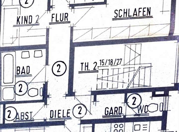Die Wohnung hat 2 Balkone, Bad (saniert 2021) mit Badewanne, Dusche und Doppelwaschbecken, Gäste WC, 3 Räume im hinteren Bereich, Abstellkammer, Küche, Esszimmer und Wohnzimmer im vorderen Bereich.