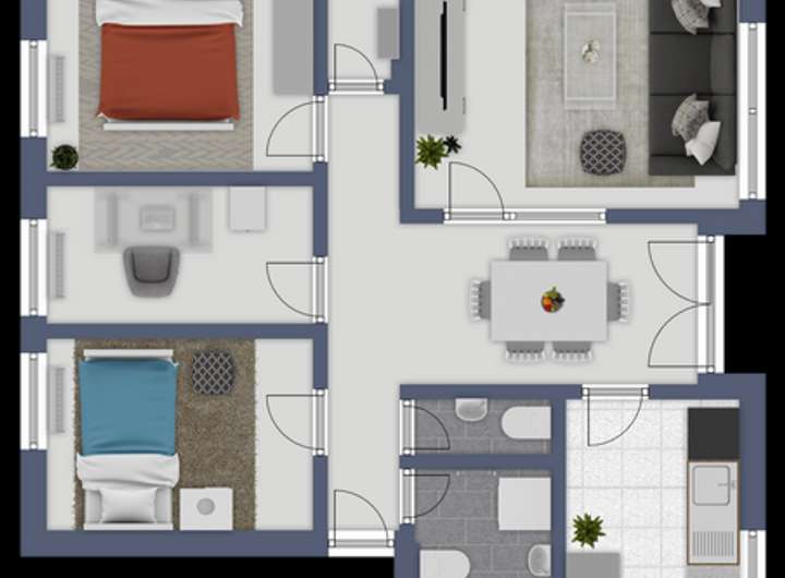Mittelpunkt dieser Wohnung bildet der Wohn- und Essbereich. Genießen Sie gemeinsame Essen und Familienabende. Den kleinen Balkon betreten Sie von der Essdiele.