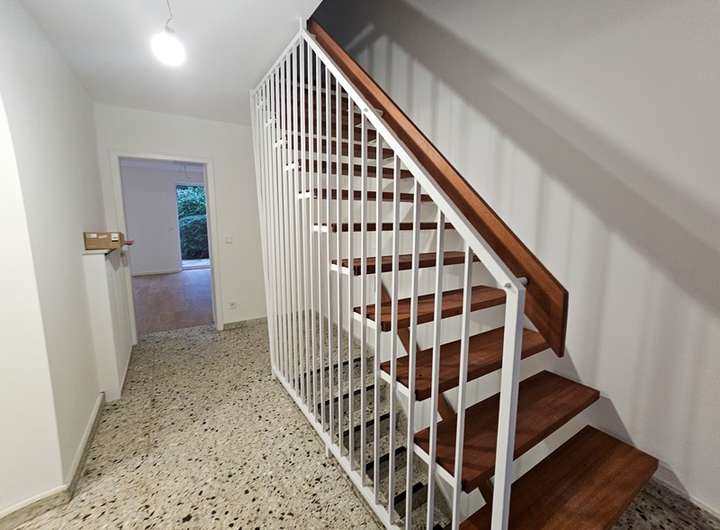 Die vollunterkellerte 4 Zimmer Doppelhaushälfte wurde 1964 in massiver Bauweise errichtet. Die Wohnfläche von ca. 110m² verteilt sich auf ca. 58,48m² Wohnfläche im Erdgeschoss und ca. 51,52m² Wohnfläche im Dachgeschoss. Die Immobilie wurde 2025 energetisch und optisch saniert und modernisiert. Bei diesen Arbeiten wurden u.a.